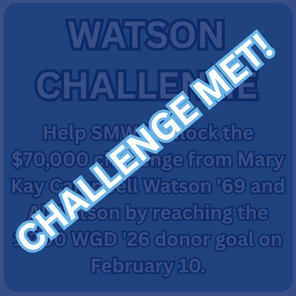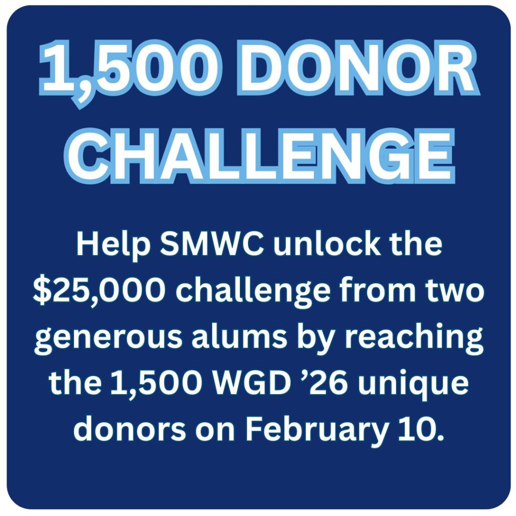 By giving a gift, on Woods Giving Day, your gift is making a greater impact. Thanks to generous alumni and community partners who are sponsoring challenges, gifts made on Woods Giving Day can potentially double! And your gift doesn’t provide just financial support to SMWC – it encourages current students by showing them that Pomeroys keep investing and believing in them every step of the way.